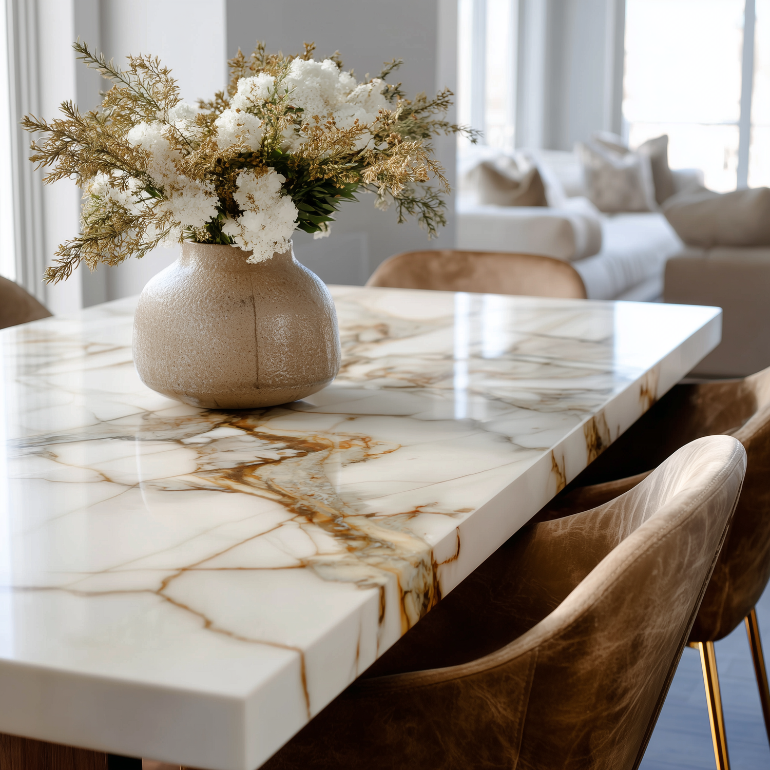 Discover handcrafted stone dining tables designed to your exact specifications. Choose your preferred dimensions, stone color, pattern, thickness, and design to create a one-of-a-kind dining table. Made from high-quality stone, each table combines timeless elegance, durability, and bespoke craftsmanship — perfect for modern, luxury, and contemporary interiors.