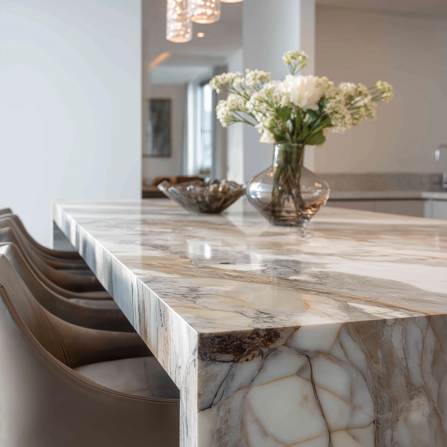 Designed for modern homes and memorable gatherings, our custom stone counter and bar tables are made for entertaining in style. Each table is crafted to order, with customizable dimensions, stone type, color, pattern, thickness, and design. Made from premium stone, these bespoke bar tables create a striking centerpiece for hosting, cocktails, and conversation — combining bold beauty, durability, and effortless luxury.